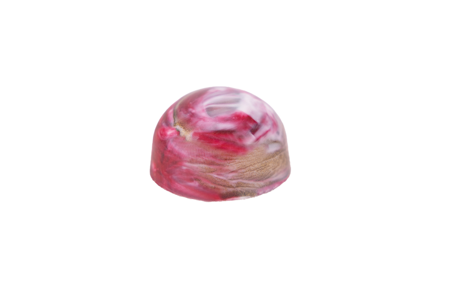 Bílá čokoládová skořápka ukrývá jahodové želé, krémovou ganache a křupavou mandlovou sušenku. Sladká, svěží a nebezpečně návyková kombinace.