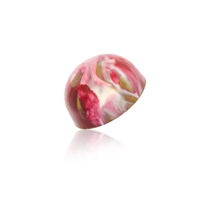 malinové želé, mátová ganache z hořké čokolády, skořápka z hořké čokolády